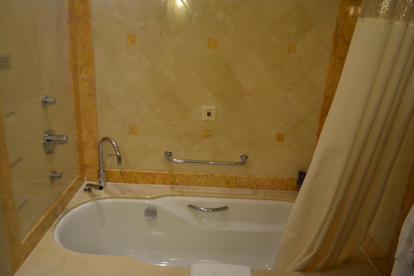 Each of the 250 guest rooms come equipped with either a sea , lagoon or garden view. The rooms are furnished in continental and traditional Islamic style. Amenities include satellite cable television, DVD players, a mp3 player docking station, minibar, coffee and espresso machine. I really enjoyed relaxing in the huge, cozy bed that came with down pillows and sheets. To top it off, the deep seated bathtub was a delight as well to take a nice, long soak in. The rooms are designed to show art deco influences, as well as local traditions, making it a great fusion of both old and new.