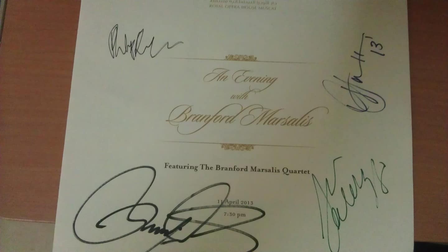 Last night the incomparable jazz artist Branford Marsalis graced the stage with his incredible band. It was indeed a magical experience seeing them rock out in fine tune. The drummer moved like no other. At moments I thought my eyes were witnessing an optical illusion seeing as how those sticks moved lol. Branford himself seemed so humble and grateful for the opportunity to play in the gorgeous Opera House. He mentioned how it was currently still cold in NYC, his last concert venue and how excited he was to play a little golf here in the Middle East :-). Take a peek at the album below to see the girls and myself met the jazz legend.