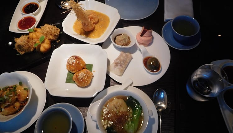 I was graciously seated at a table inside due to the rainy weather, but the outdoor patio seating is surely a sight to behold on a clear day overlooking the Palace grounds and city. Hakkasan offers an outstanding Friday brunch selection where you can choose from an array of Asian dishes for your starter and then move on to a delicious main course and a buffet of fine desserts. Chef Lee Kok Hua whipped up a bowl of soup for me try from the buffet line.