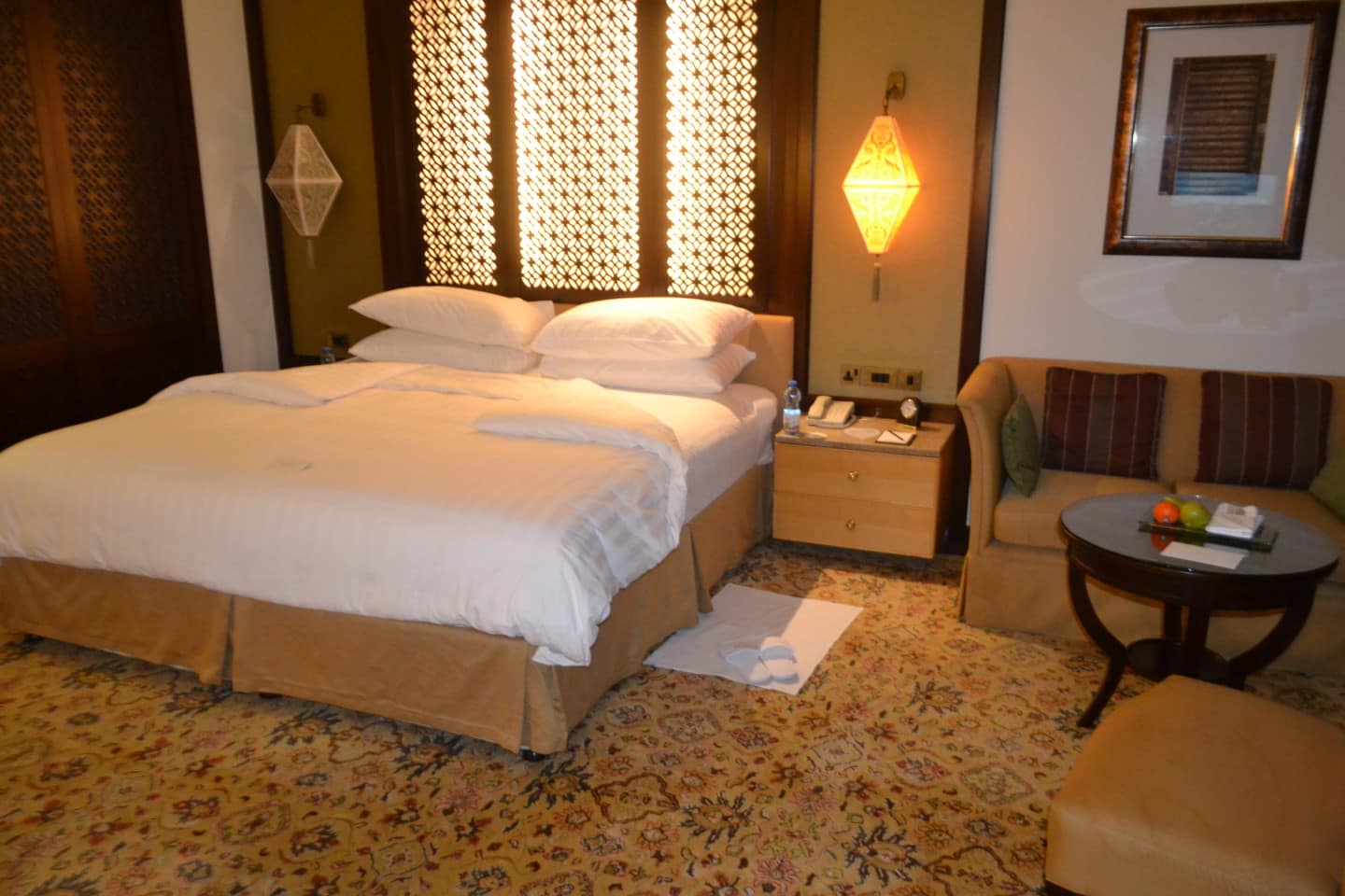 Upon entry, we were greeted with a warm welcome from the hotel staff into the opulent lobby of the Al Husn Hotel. This hotel is adorned in opulent luxury with a magnificent wooden Omani door at the main entrance, as well as stunning artwork and chandeliers. The resort consists of three different hotels and Al Husn is the most luxurious of them all (even though they all are Fabulous).