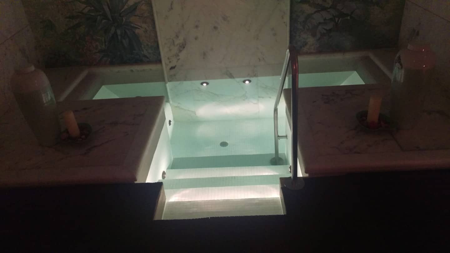 I absolutely loved the facilities, which featured a beautiful changing room area. Additionally, guests are able to relax in either the cool plunge pool area or the indoor Jacuzzi to rest up a bit, enjoying a nice cool beverage of mixed berry water that was available in the changing area. The Hamman in the fitness center that is attached to the spa offers four plunge pools set at different temperatures. Personal training, swimming lessons, table tennis and other activities are also available at the Ritz Carlton Bahrain fitness center.